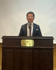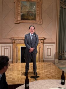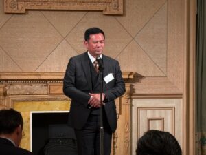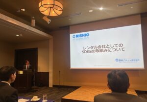令和7年12月2日午後4時からホテルモントレグラスミア大阪で賛助会員との懇話会を開催した。懇話会には組合員、賛助会員各社から65名が出席。廣津副理事長の総合司会で進行し、中島賛助部会長の挨拶に続いて、賛助会員2社と組合員2社がプレゼンを行った。