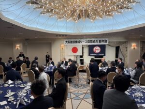 開宴に先立ち、菅 大樹理事長より挨拶があり、続いて中島 正道賛助部会長の挨拶、その後、大阪府中小企業団体中央会 総務部長 三宅 泰太郎氏による乾杯のご発声で開宴となりました。