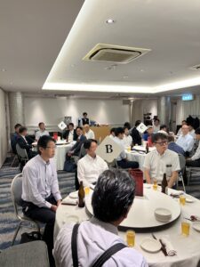 開会後、約30分間各テーブルで今後の組合の運営方針等について議論した。その後、菅理事長の乾杯の発声により懇親会がスタート。